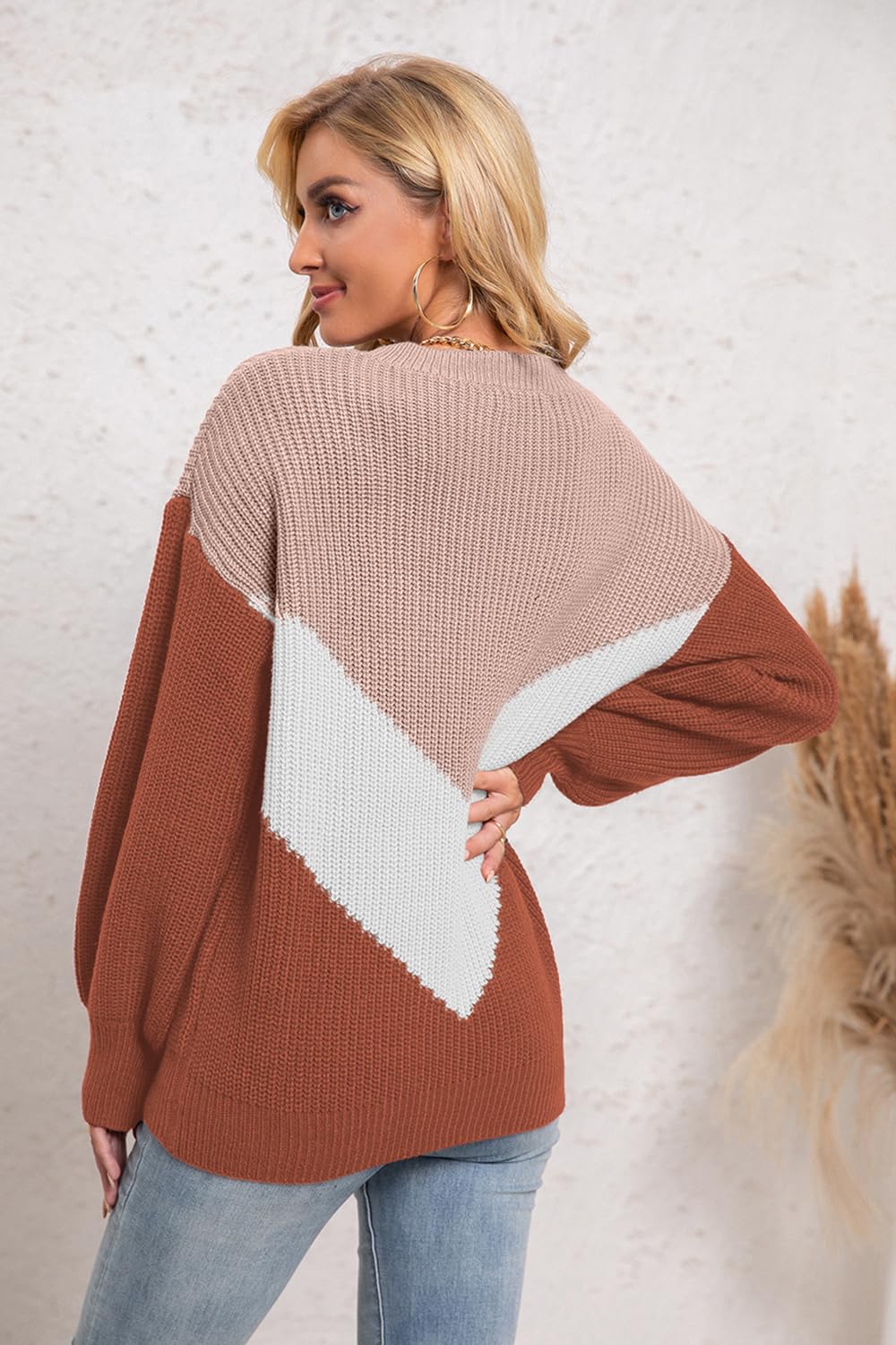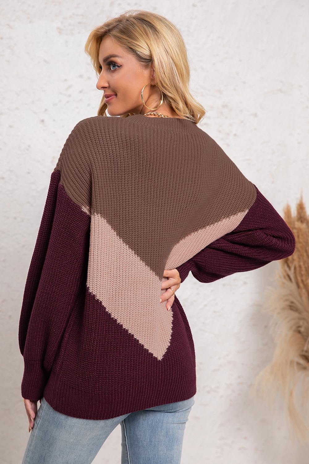 Cozy up in style with this women’s oversized colorblock sweater. Designed for both comfort and elegance, this long-sleeve pullover features a relaxed fit, soft breathable fabric, and a classic round neckline. With its fashionable batwing sleeves and eye-catching colorblock design, it’s a versatile piece perfect for layering through fall and winter.