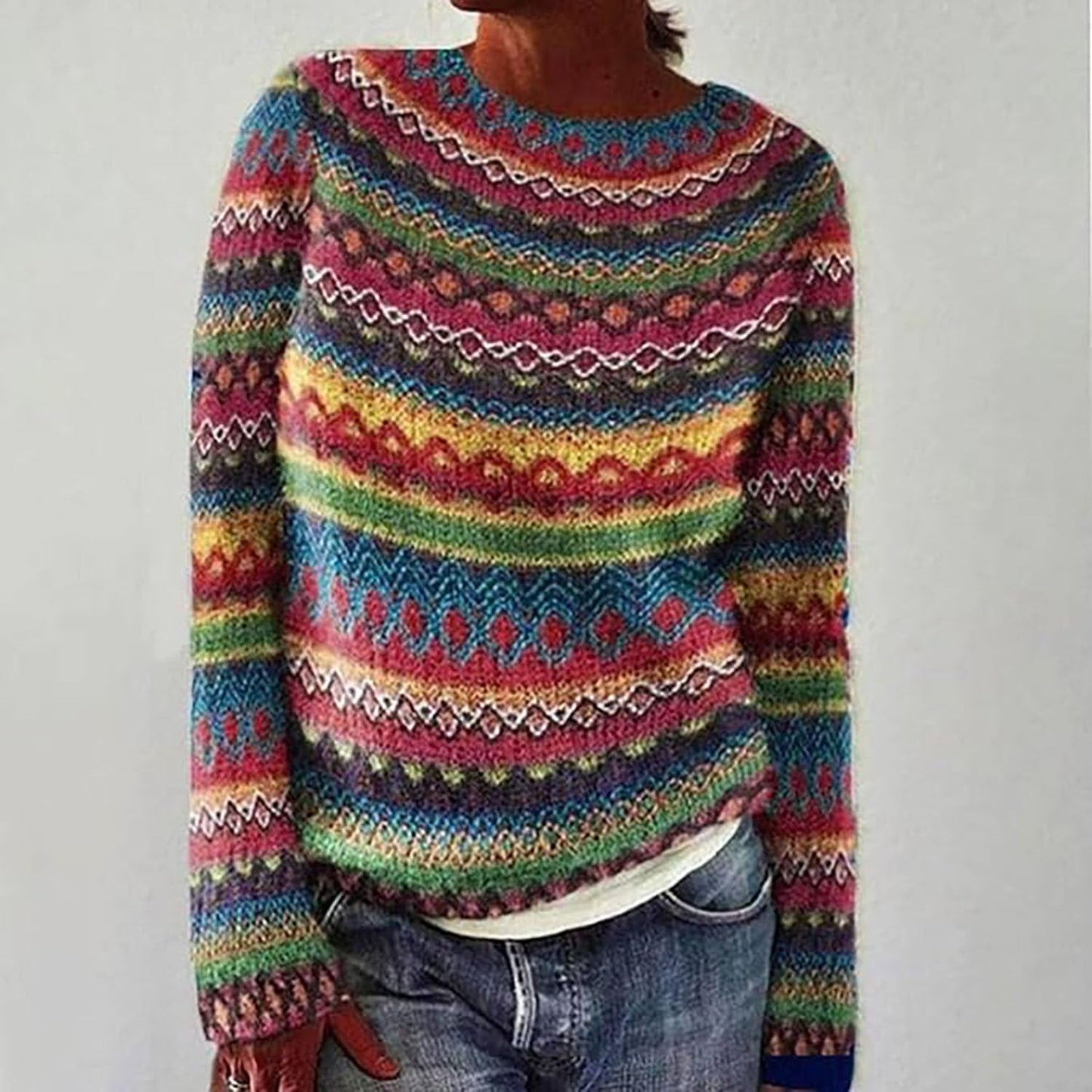 Embrace warmth and tradition with this women’s Norwegian-style knit sweater. Featuring a soft, breathable cotton blend and classic round neckline, this slim-fit pullover stands out with its colorful patterns and elegant design. Ideal for fall and winter, it’s a stylish yet cozy choice for casual days, outings, or festive gatherings.
