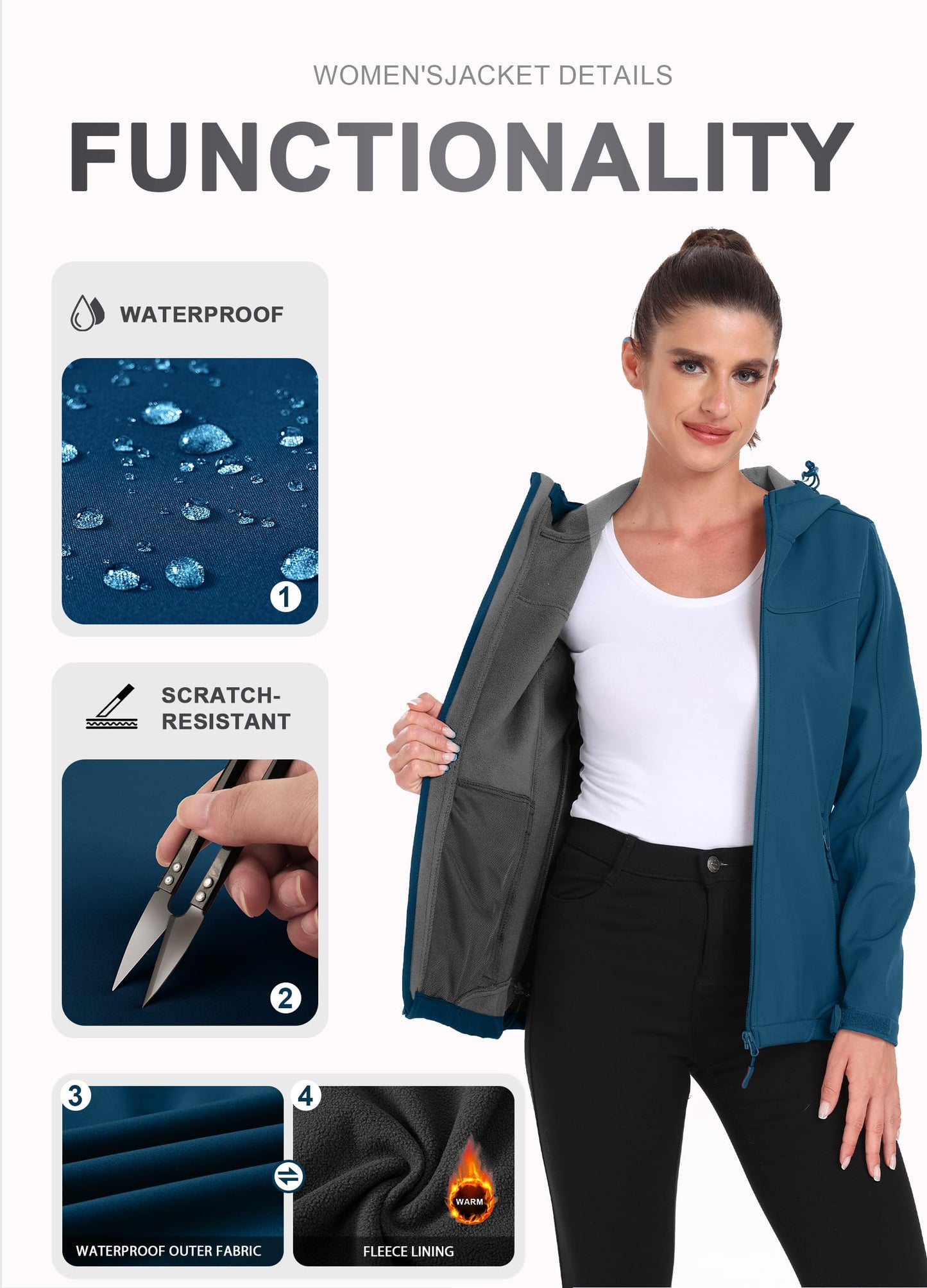 Women’s Softshell Jacket – Waterproof Fleece-Lined Outdoor Coat
