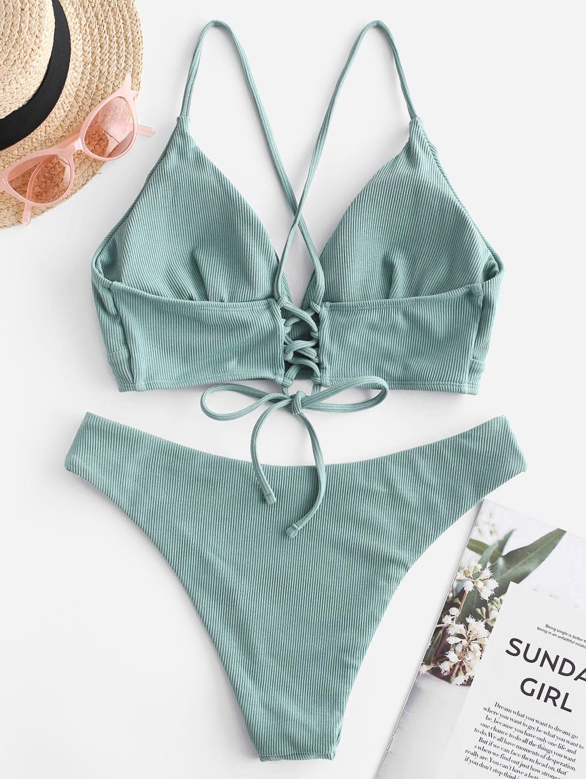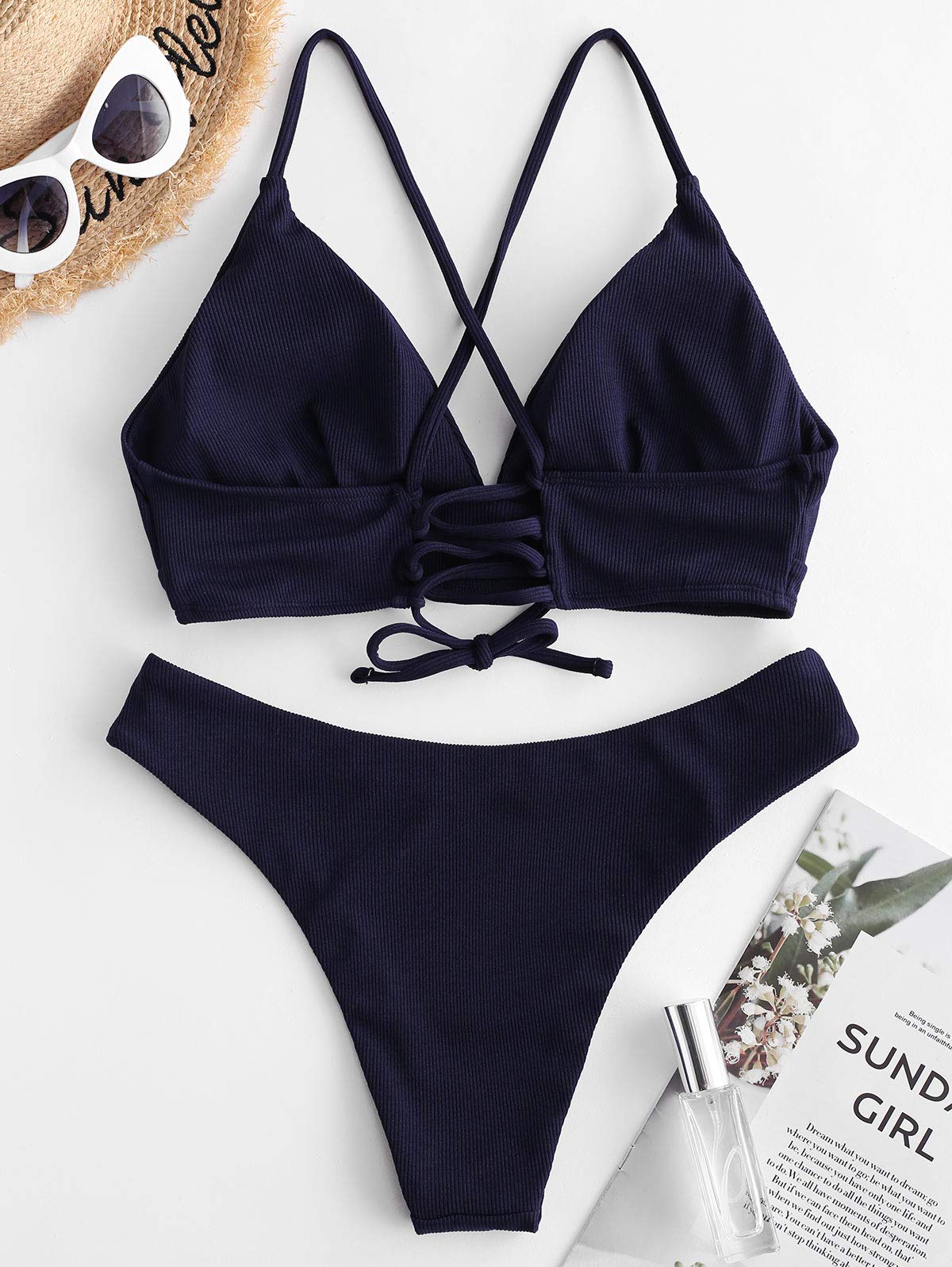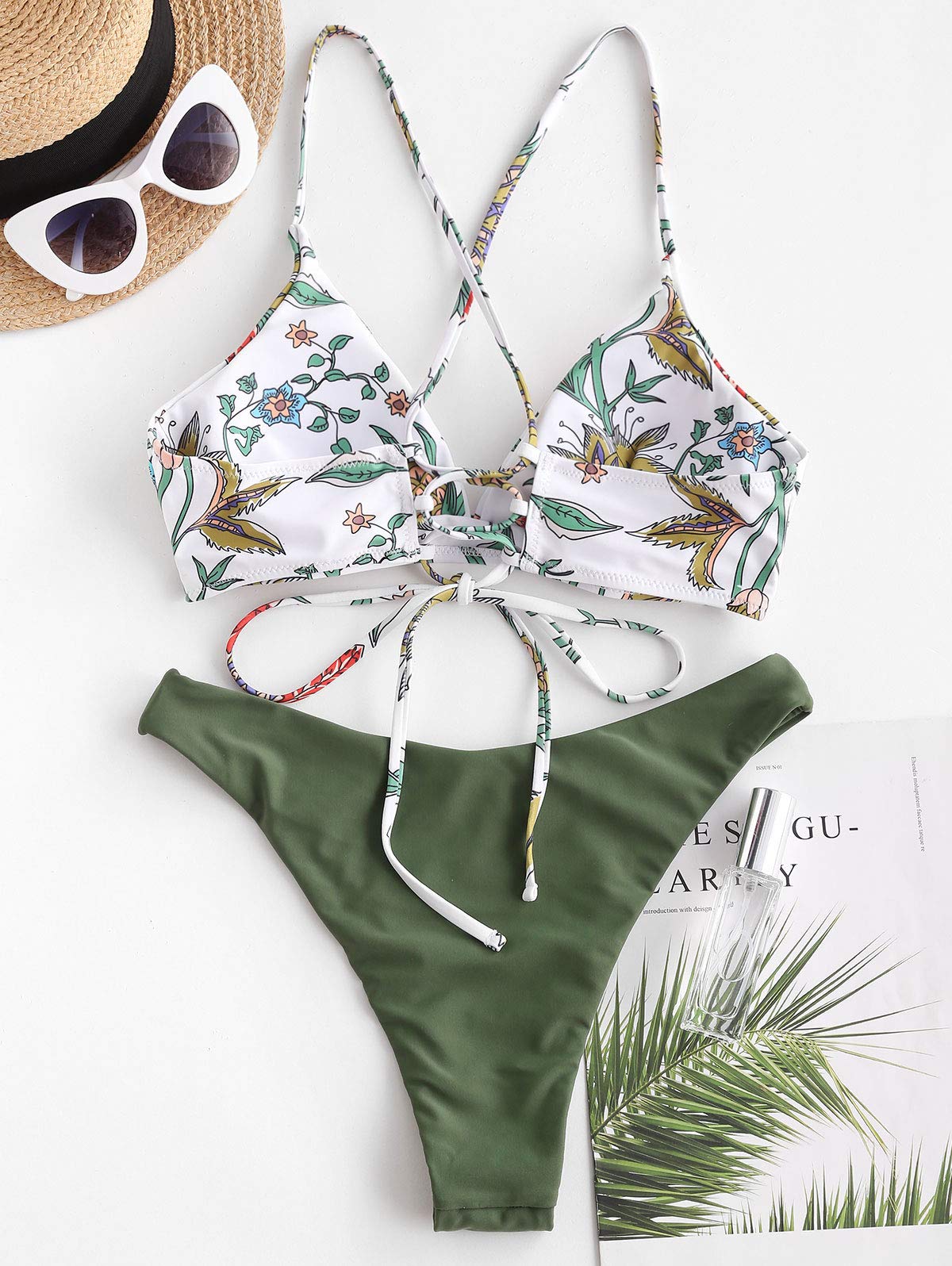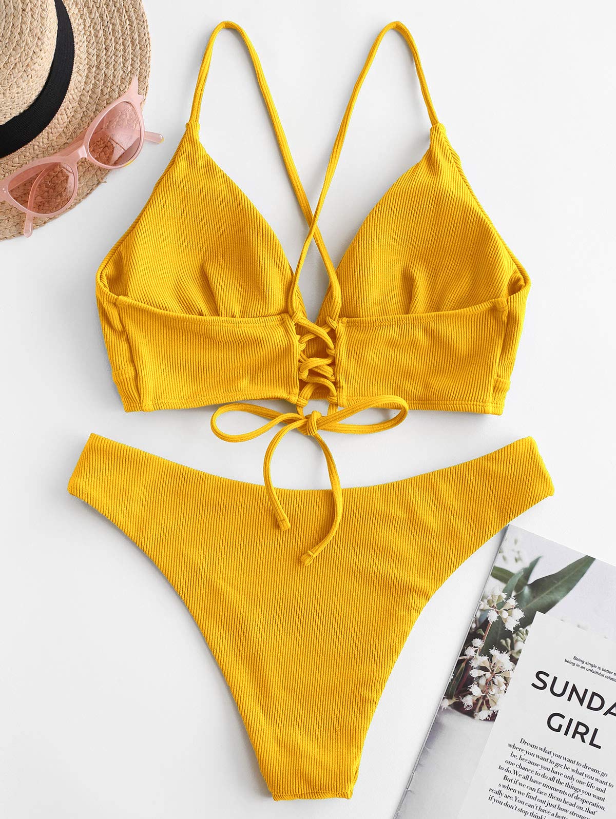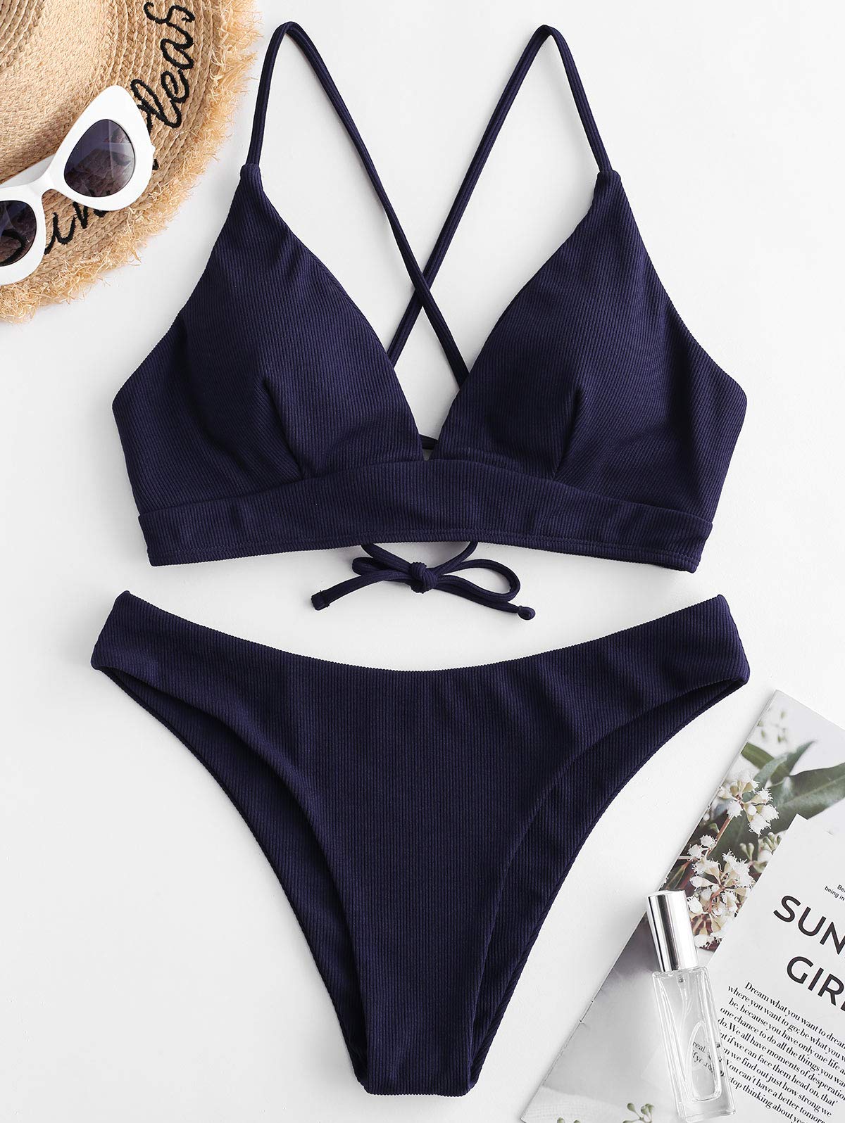 The ZAFUL Women’s Two-Piece Bikini Set combines style and comfort with a beautiful sunflower print design. Made from premium ribbed fabric, this bikini set features a soft texture that feels gentle on the skin while offering a unique look. The bikini top is designed with a trendy cami lace-up detail, adding a touch of elegance and allure, while the push-up padding provides great support. The natural waistline bottoms perfectly contour your curves, offering both comfort and style. Ideal for your next beach vacation or poolside lounging.