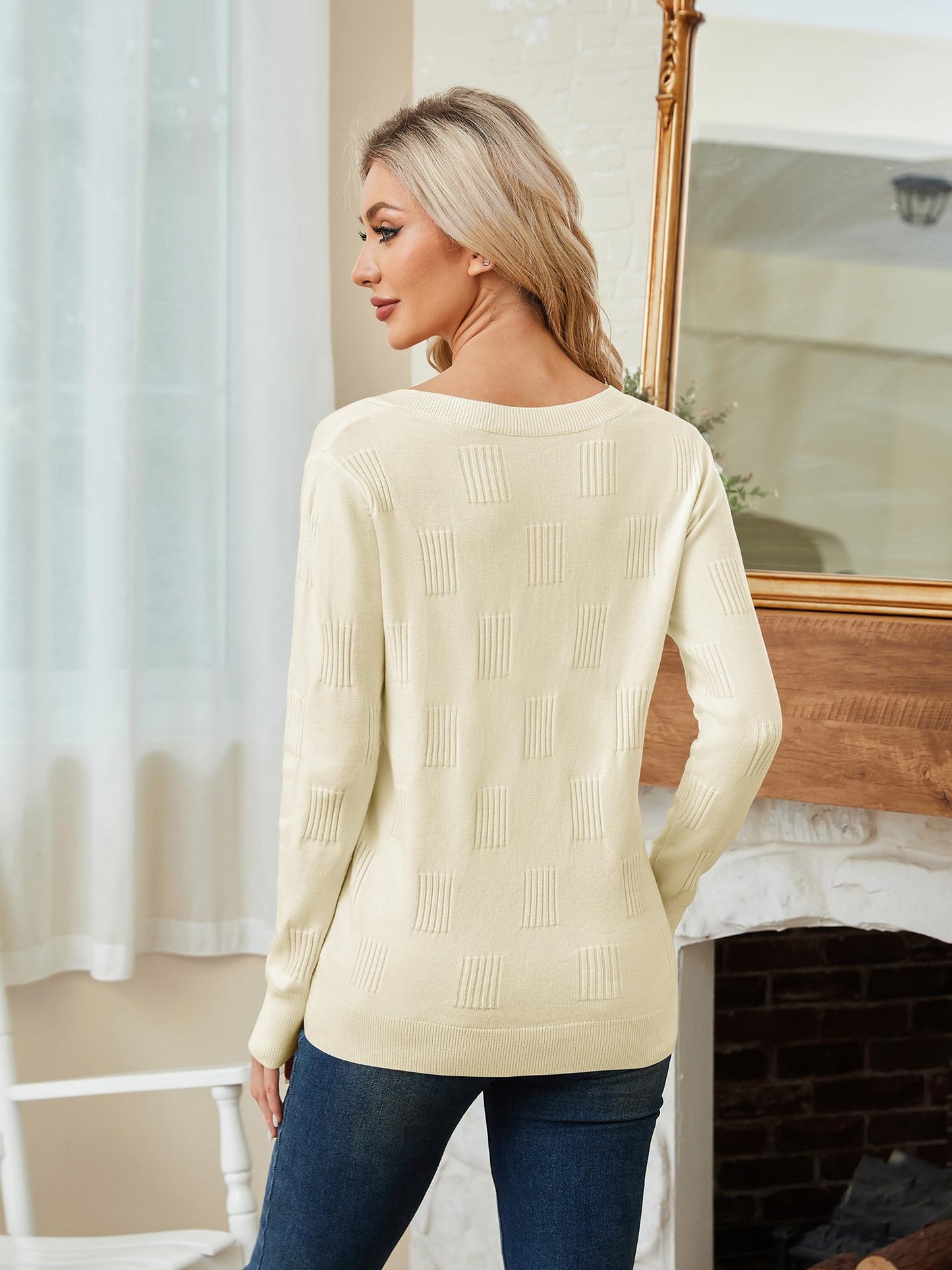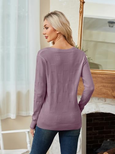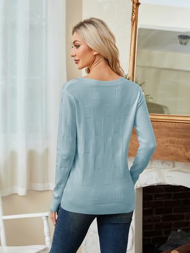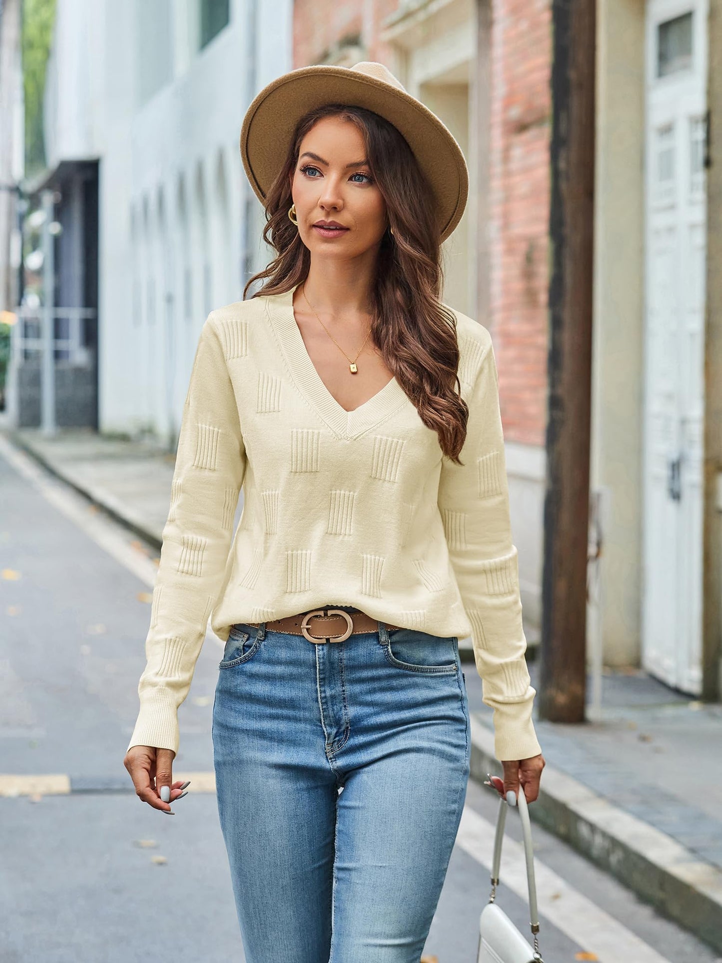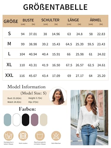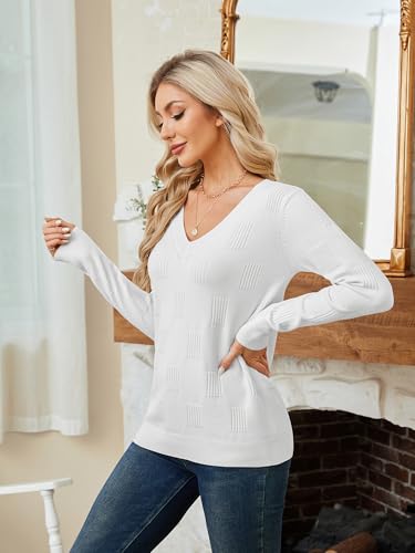 Women’s V-Neck Knit Sweater – Long Sleeve Casual Elegant Pullover