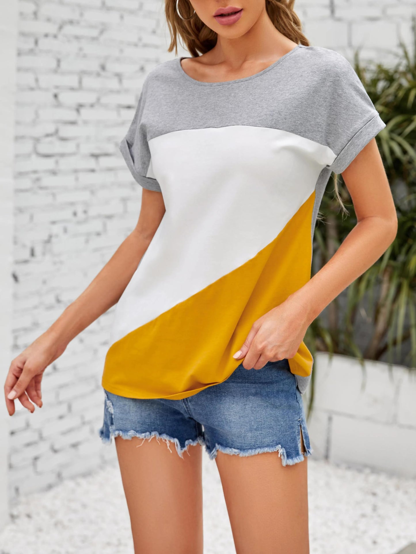 Add a pop of color to your summer wardrobe with this casual color block t-shirt. Designed for comfort and everyday style, it features a relaxed fit, soft cotton blend, and a modern block-striped design that flatters all body types. Perfect for daily wear, lounging, or casual outings.