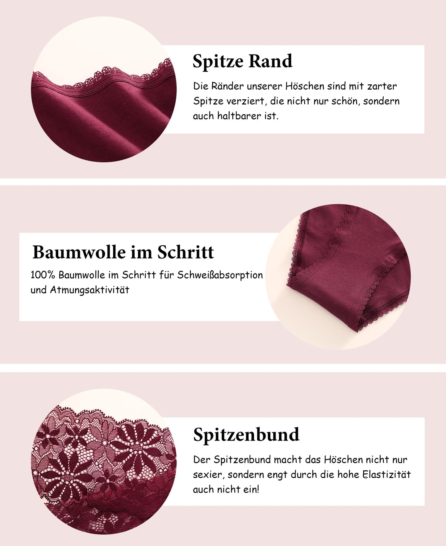 Women's Lace Cotton Hipster Panties Pack of 6 Soft Breathable Briefs - S–XL