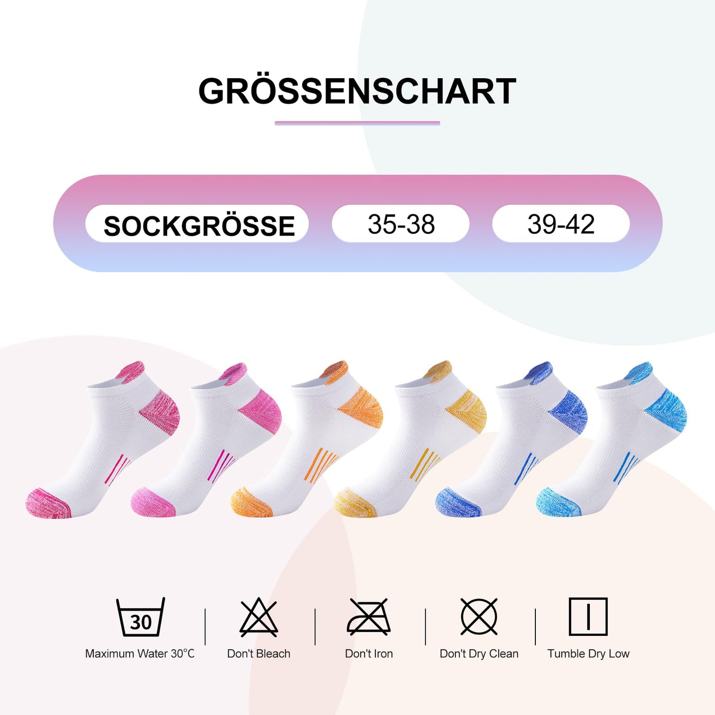 Stay comfortable and protected with our Women's Sneaker Socks, designed for active lifestyles. Made from a soft cotton blend with added polyester and spandex for flexibility and durability, these sports socks feature a reinforced heel tab to prevent blisters caused by friction. The cushioned soles offer extra support and shock absorption, making them ideal for high-intensity activities. Thanks to the breathable mesh fabric on top, your feet stay cool, dry, and odor-free. Available in cheerful sorbet colors, these socks bring both energy and style to your workouts and daily wear.