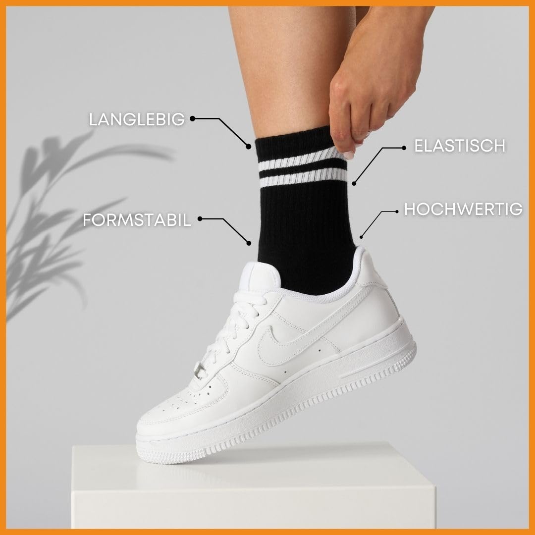 Experience the ultimate comfort with these high-quality women's tennis socks! Made from 85% soft combed cotton, 12% polyamide, and 3% elastane, these socks offer a perfect fit and outstanding durability. The reinforced terry sole makes them especially sturdy, while the breathable materials ensure your feet stay dry. With a stylish retro design featuring stripes and eco-friendly packaging, these socks are both functional and fashionable. Ideal for everyday wear or as a gift.
