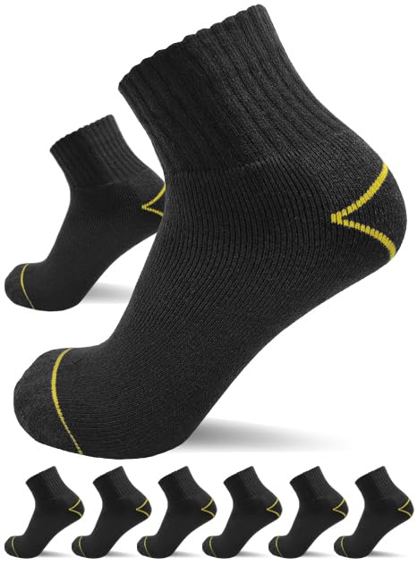 Discover the ultimate comfort and durability with Work Quarter Socks for Men. Made from a cotton-rich blend (75% cotton, 23% polyamide, 2% elastane), these half-height work socks are designed to provide long-lasting comfort for all-day wear. The reinforced heel and toe areas, along with a soft terry sole, prevent blisters and provide a cushioned fit. With an anti-odor cotton formula, they keep your feet fresh and dry, even during the longest shifts. Available in black and black/gray, these socks are perfect for work shoes, boots, or casual wear.