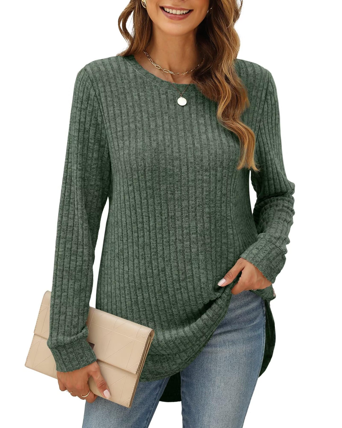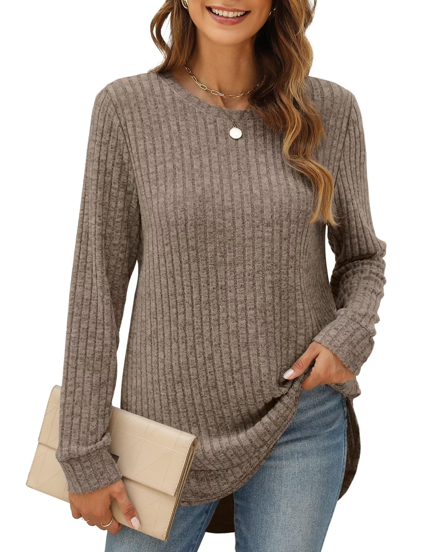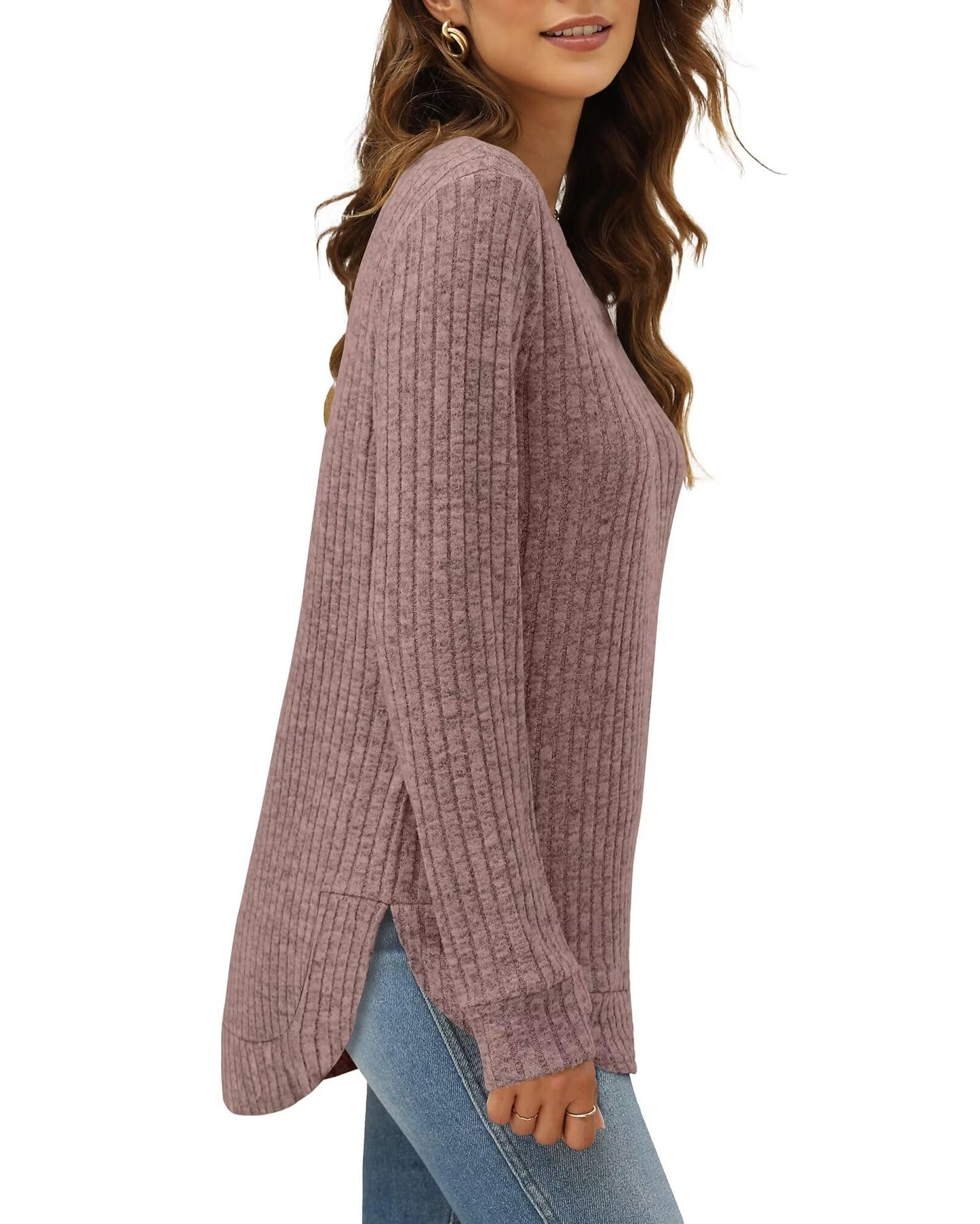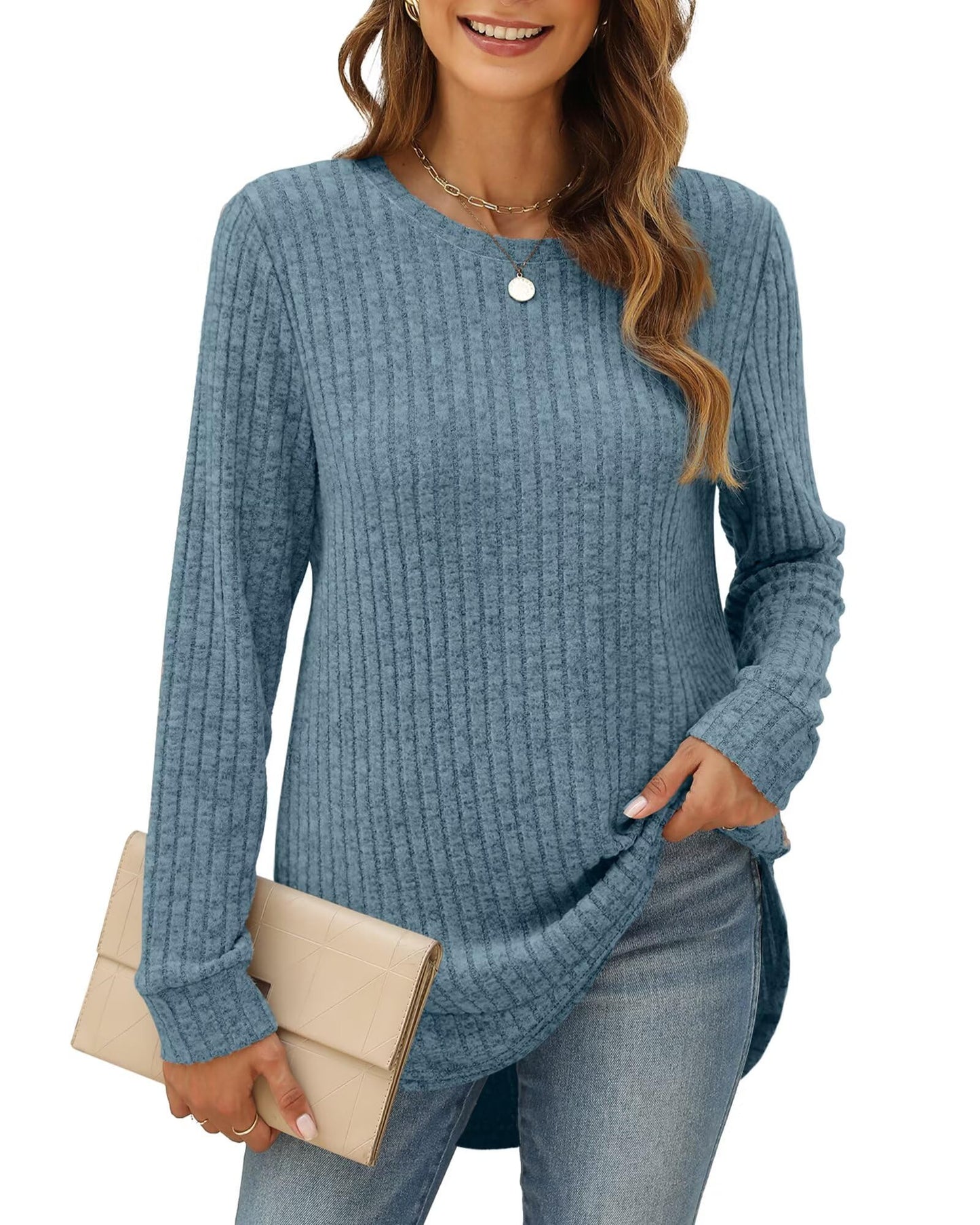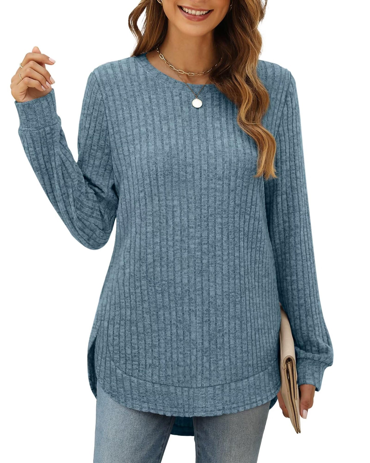 XIEERDUO Women's Pullover Sweater – Curved Hem Knit Sweatshirt