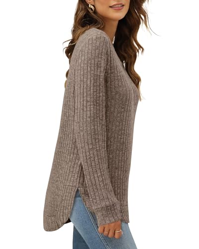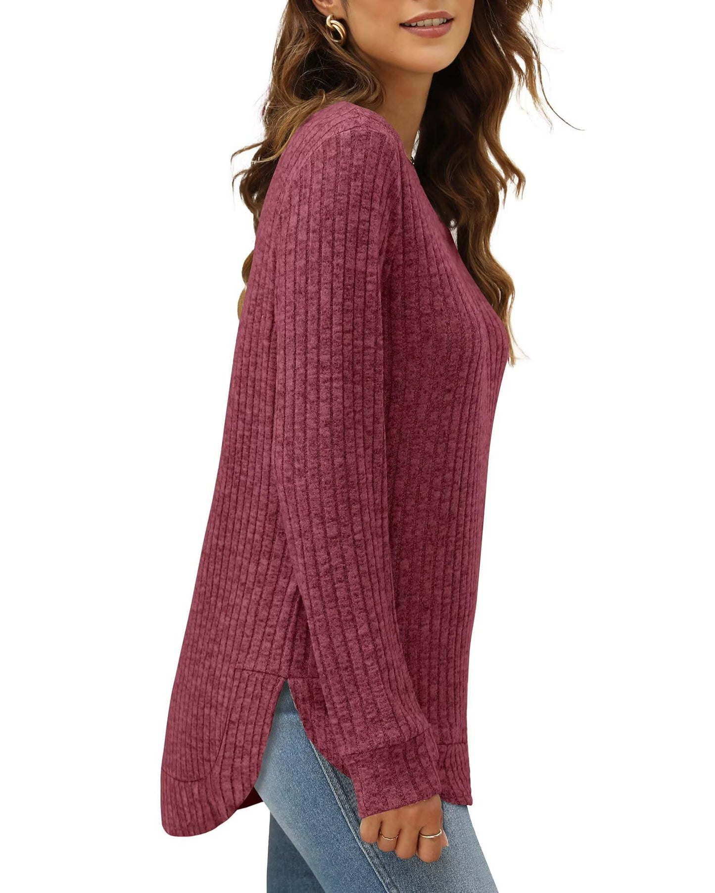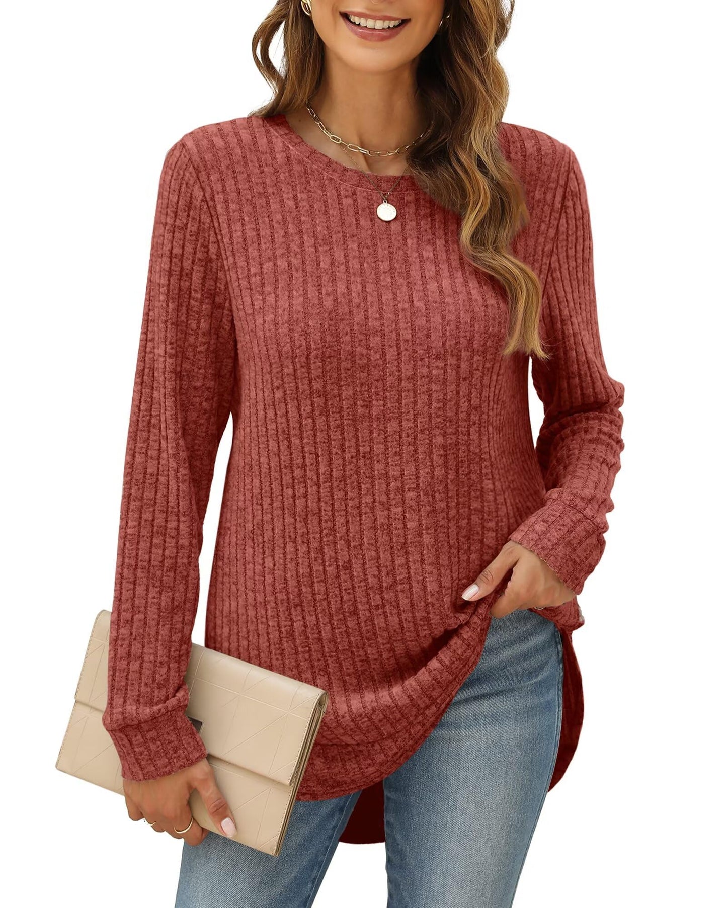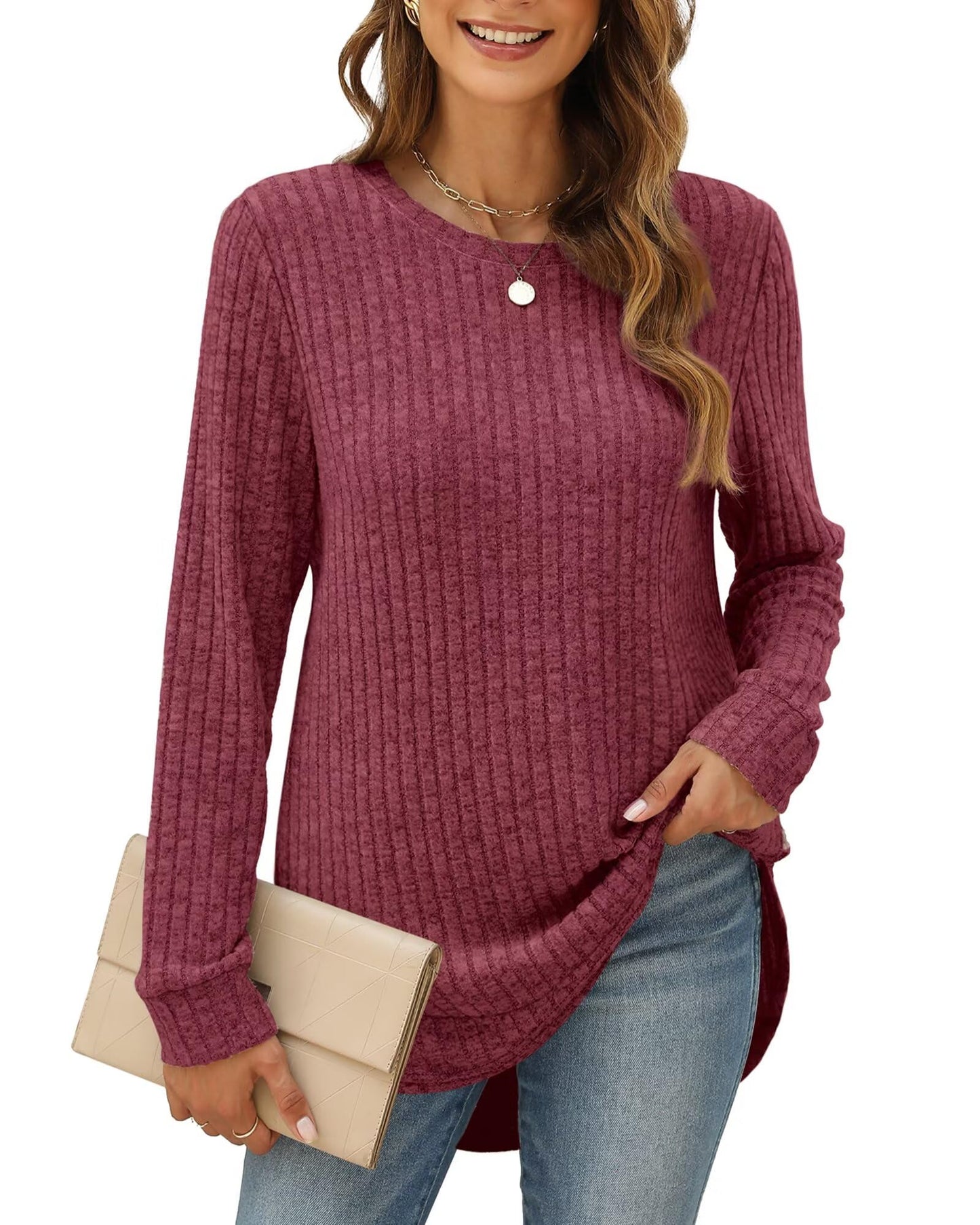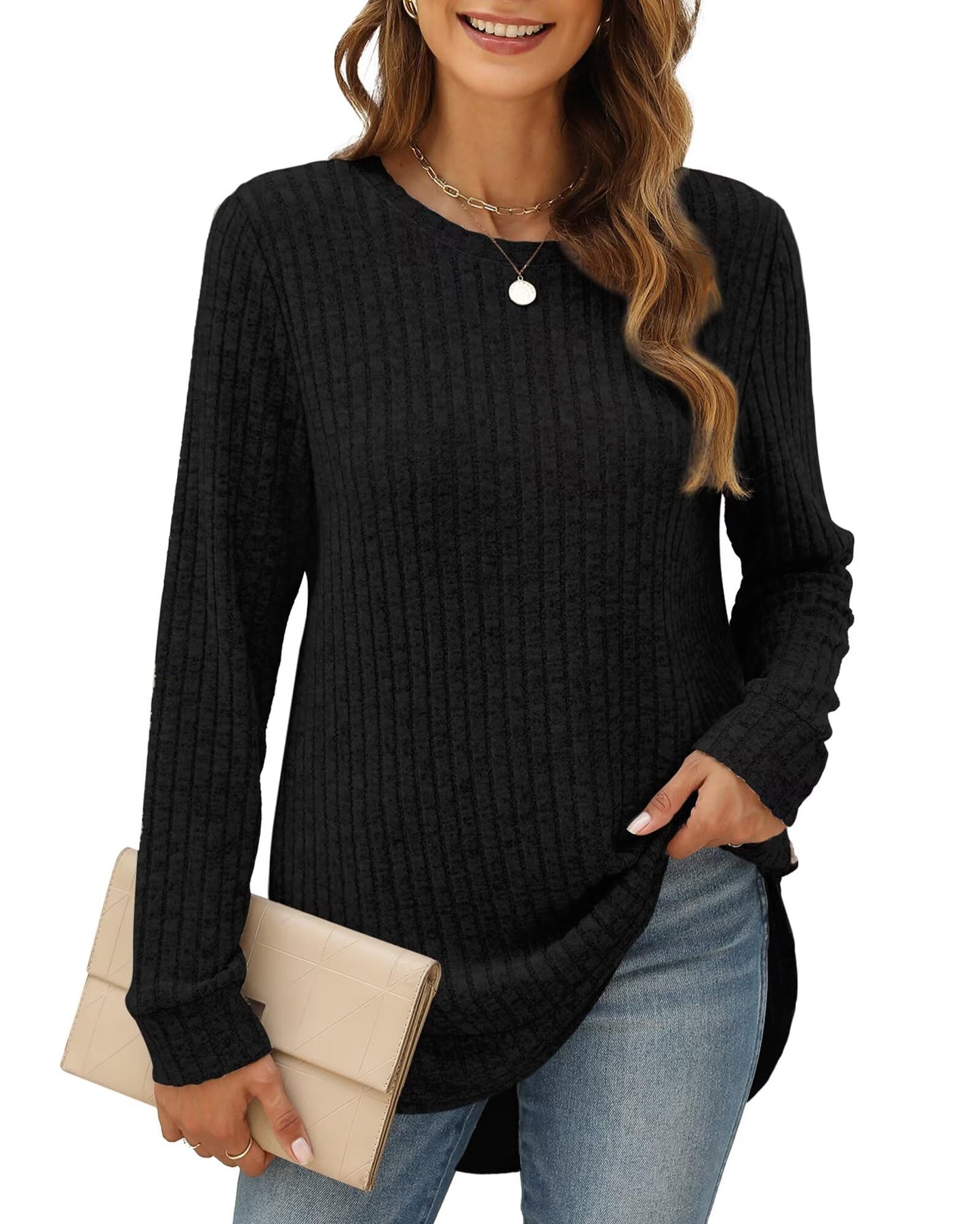 XIEERDUO Women's Pullover Sweater – Curved Hem Knit Sweatshirt