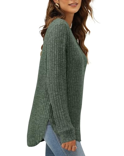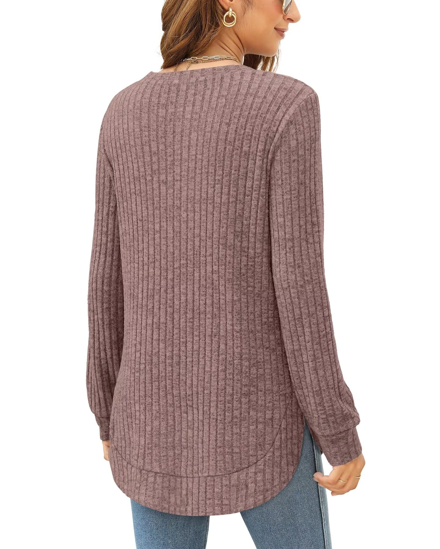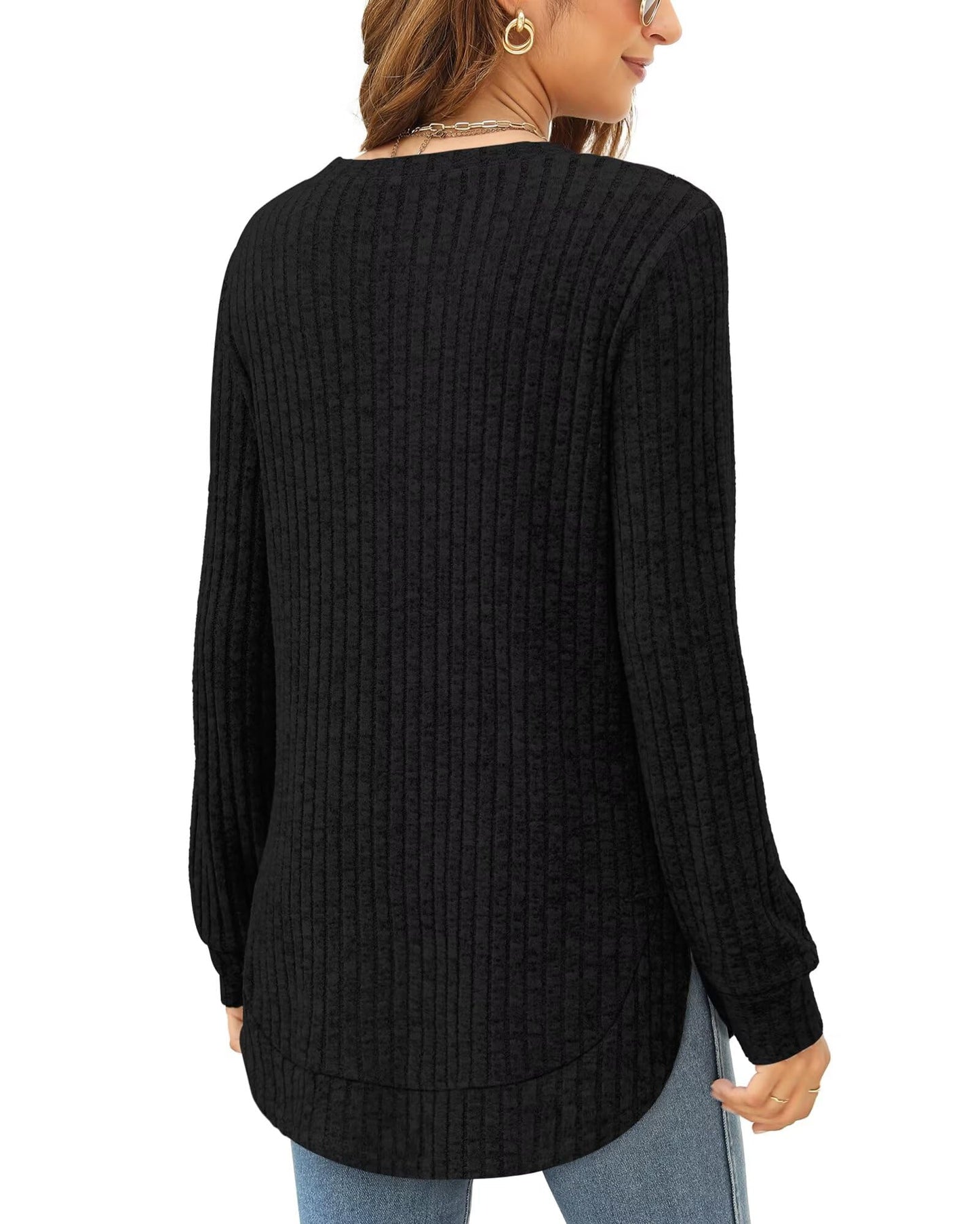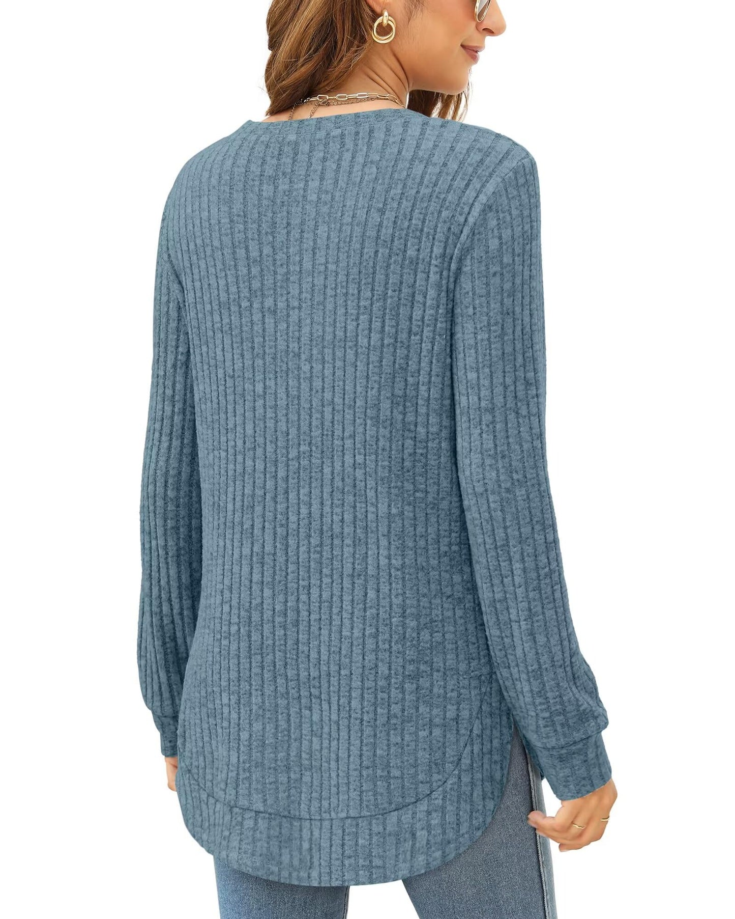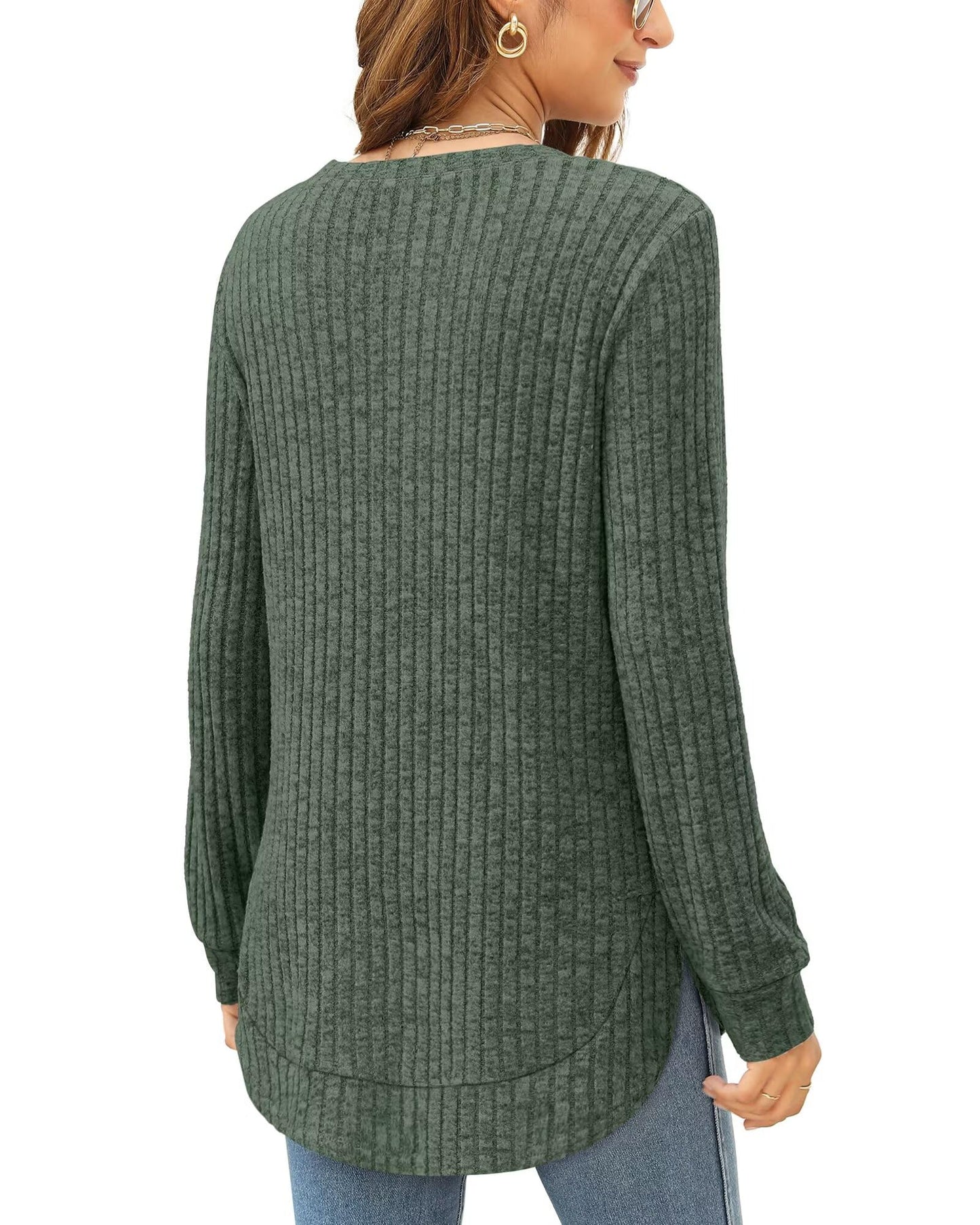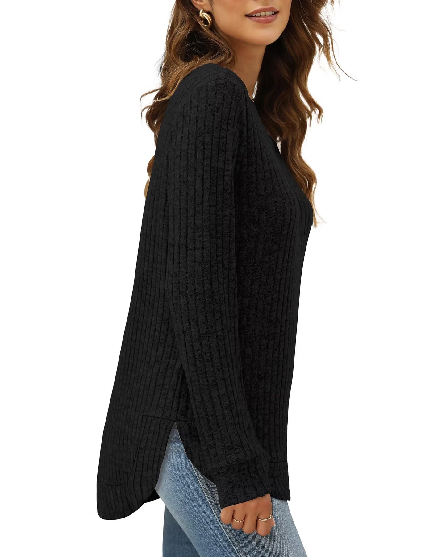 XIEERDUO Women's Pullover Sweater – Curved Hem Knit Sweatshirt
