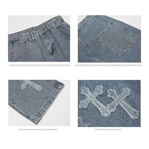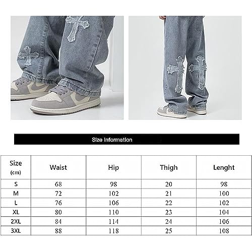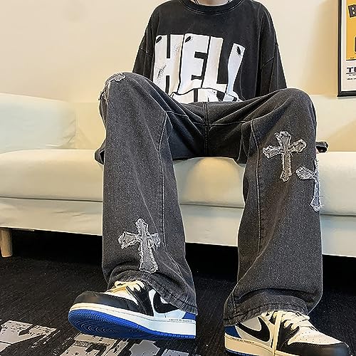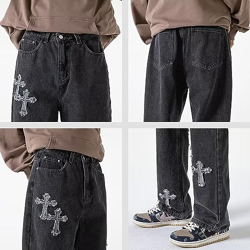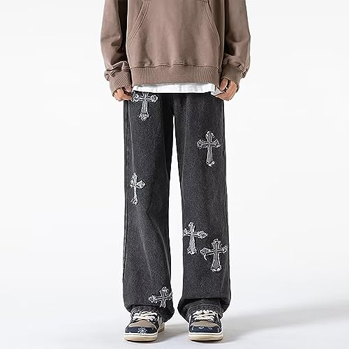 The Y2K Vintage Effect Baggy Jeans for Men with Cross Print offer a perfect blend of streetwear and retro style. Crafted from a soft cotton blend with a hint of stretch, these jeans provide both comfort and flexibility. Featuring a relaxed straight fit with a unique cross patch design, these jeans are ideal for fashion-forward individuals looking to make a statement. Whether you're into Hip Hop, Harajuku, or just want to add some vintage flair to your wardrobe, these jeans are a must-have addition. Easy to pair with your favorite tees, sweatshirts, or sneakers, they are designed for both comfort and style.