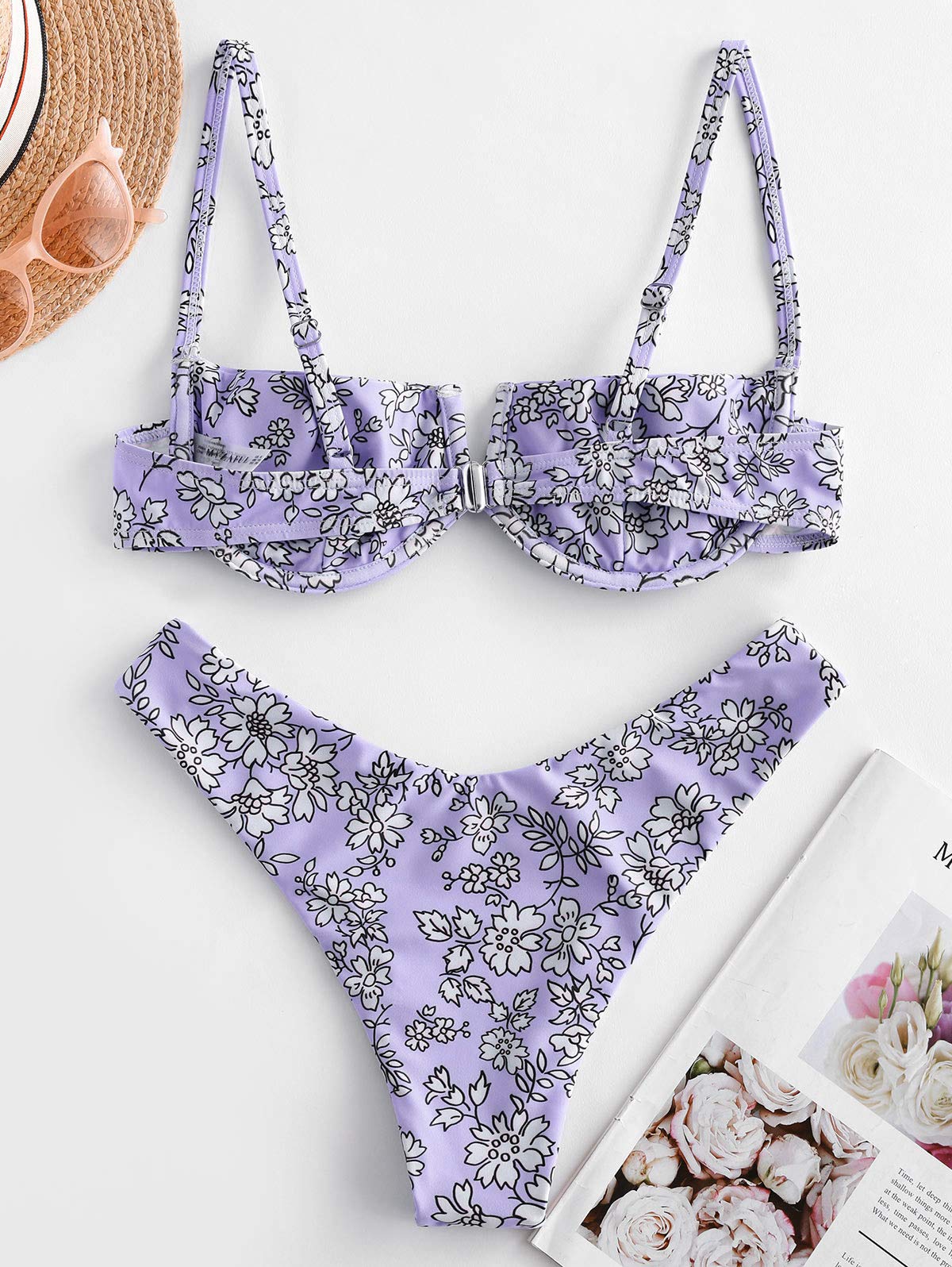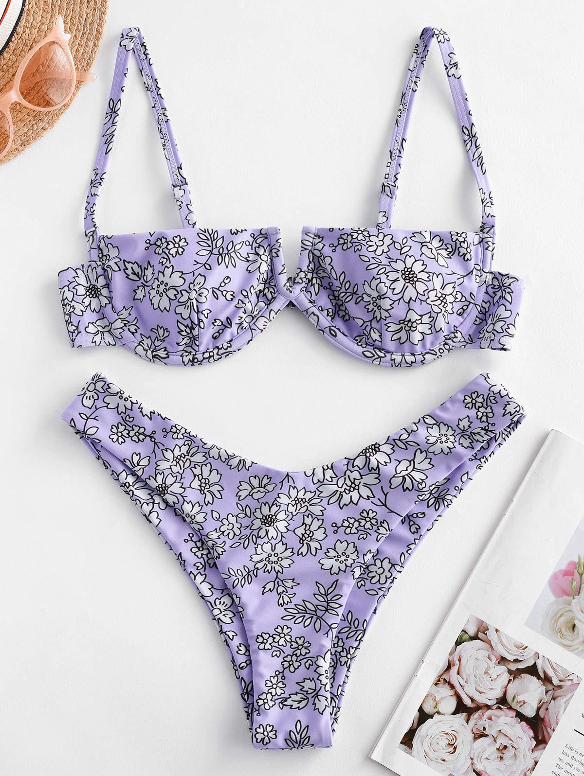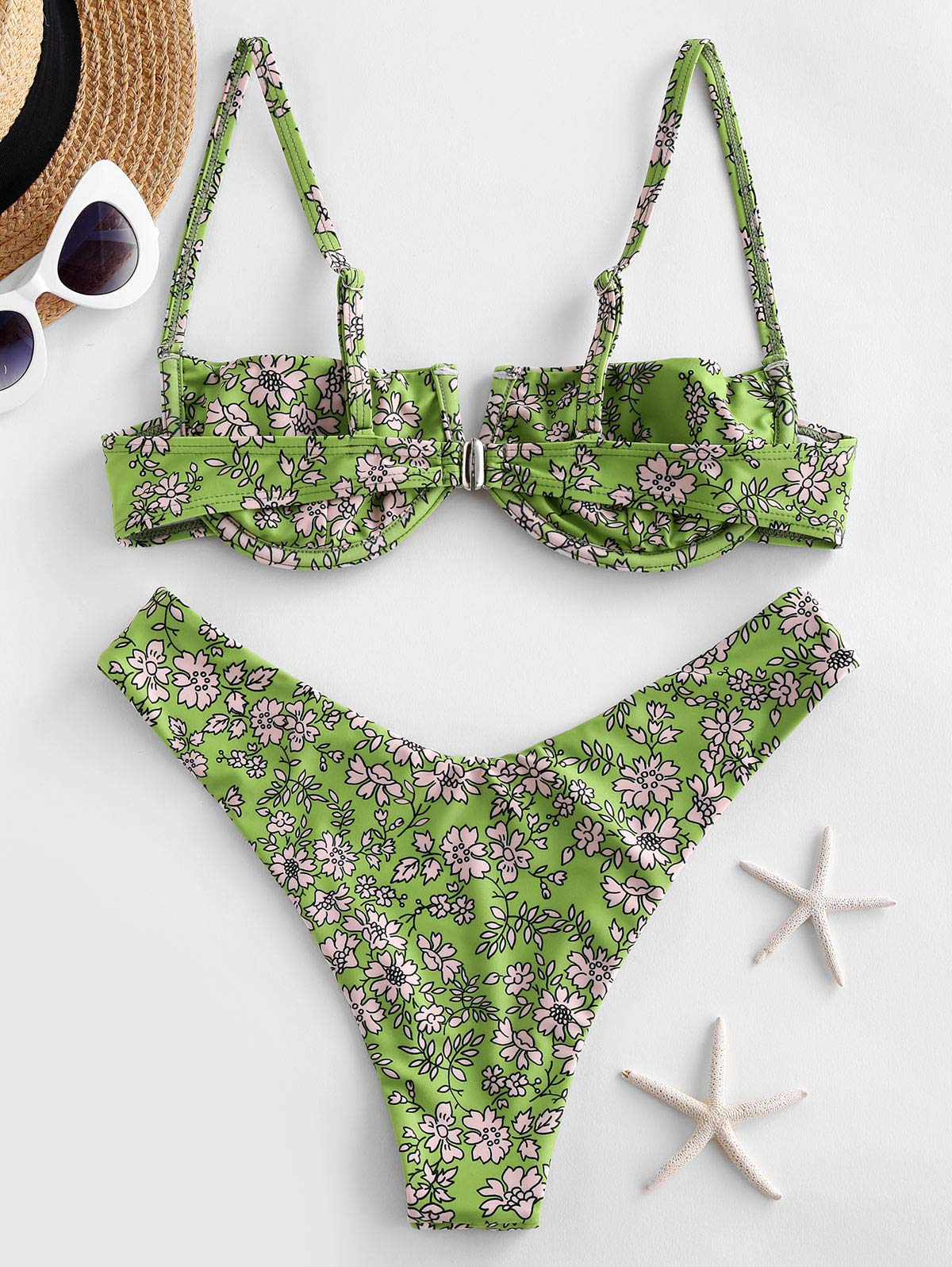 Zaful 2-Piece Bikini Set Floral High Cut Underwire Bikini for Women