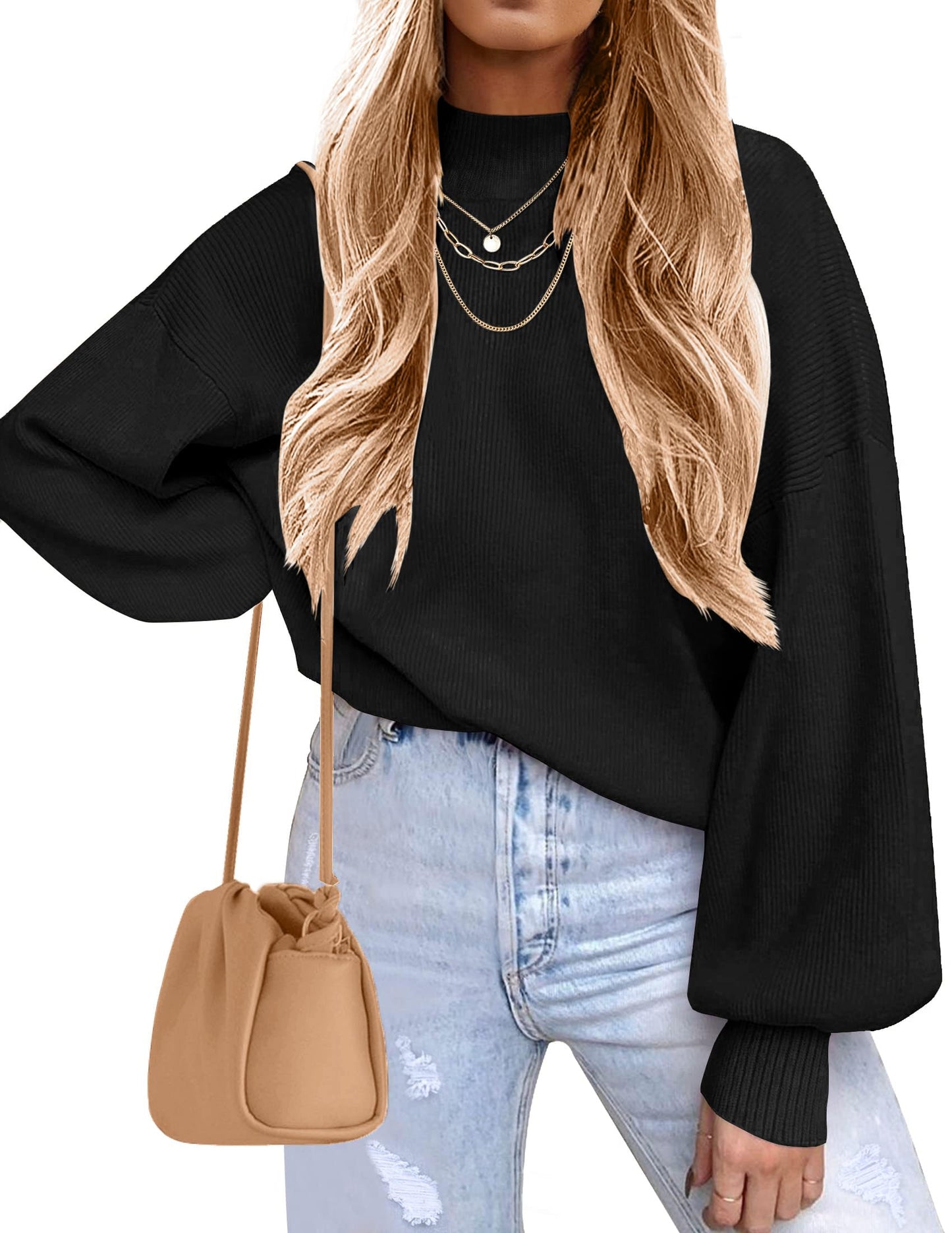Zeagoo Women’s Puff Sleeve Knit Sweater – Cozy Loose Fit Pullover