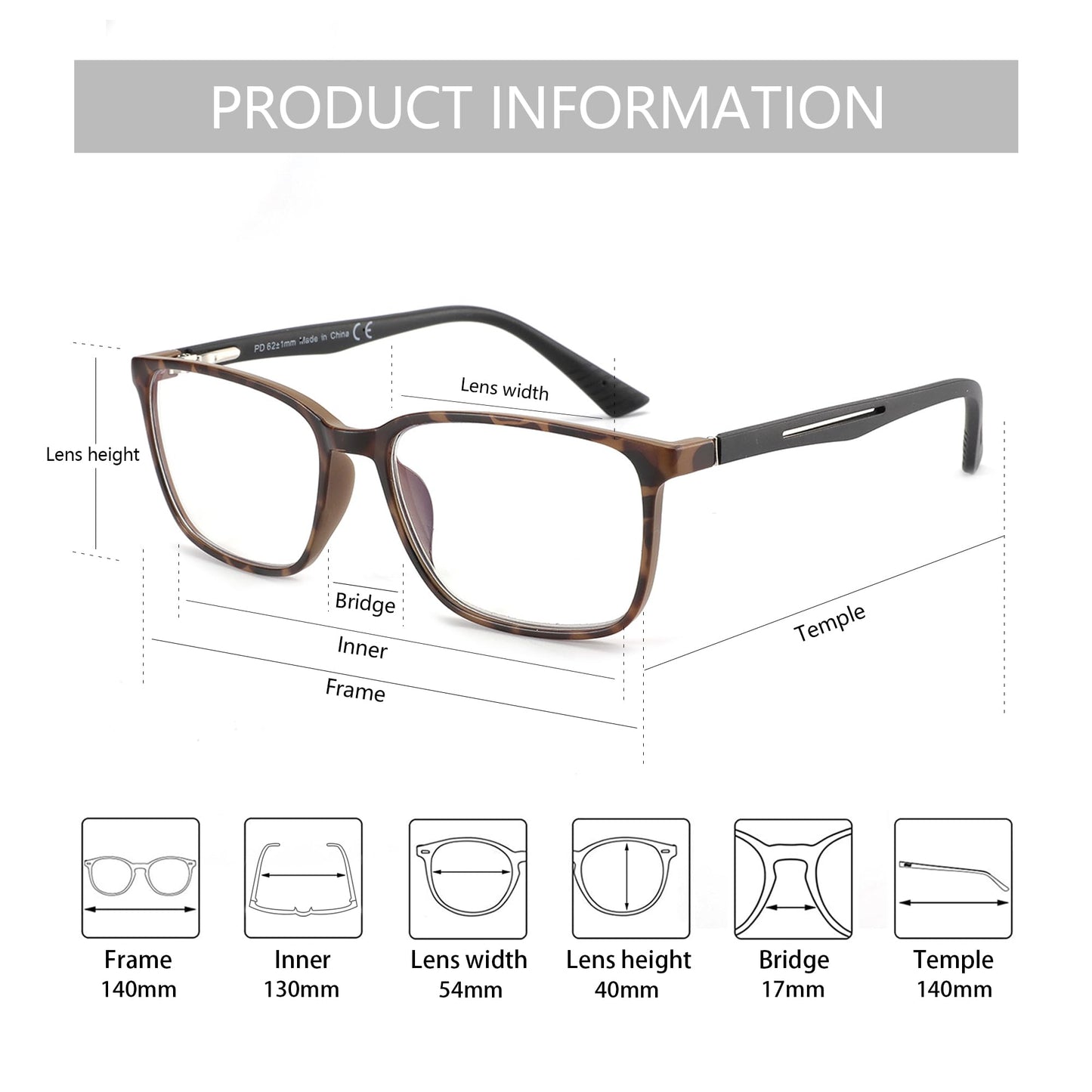 - Rahmenmaterial - Die modische Brille besteht aus ultraleichtem TR-Material für den Rahmen, weichen Gummibügeln und robusten Metallfederscharnieren. Das verstellbare Federscharnier ermöglicht es Ihnen, die passende Passform für verschiedene Gesichtsformen zu finden, für maximalen Tragekomfort und Flexibilität.