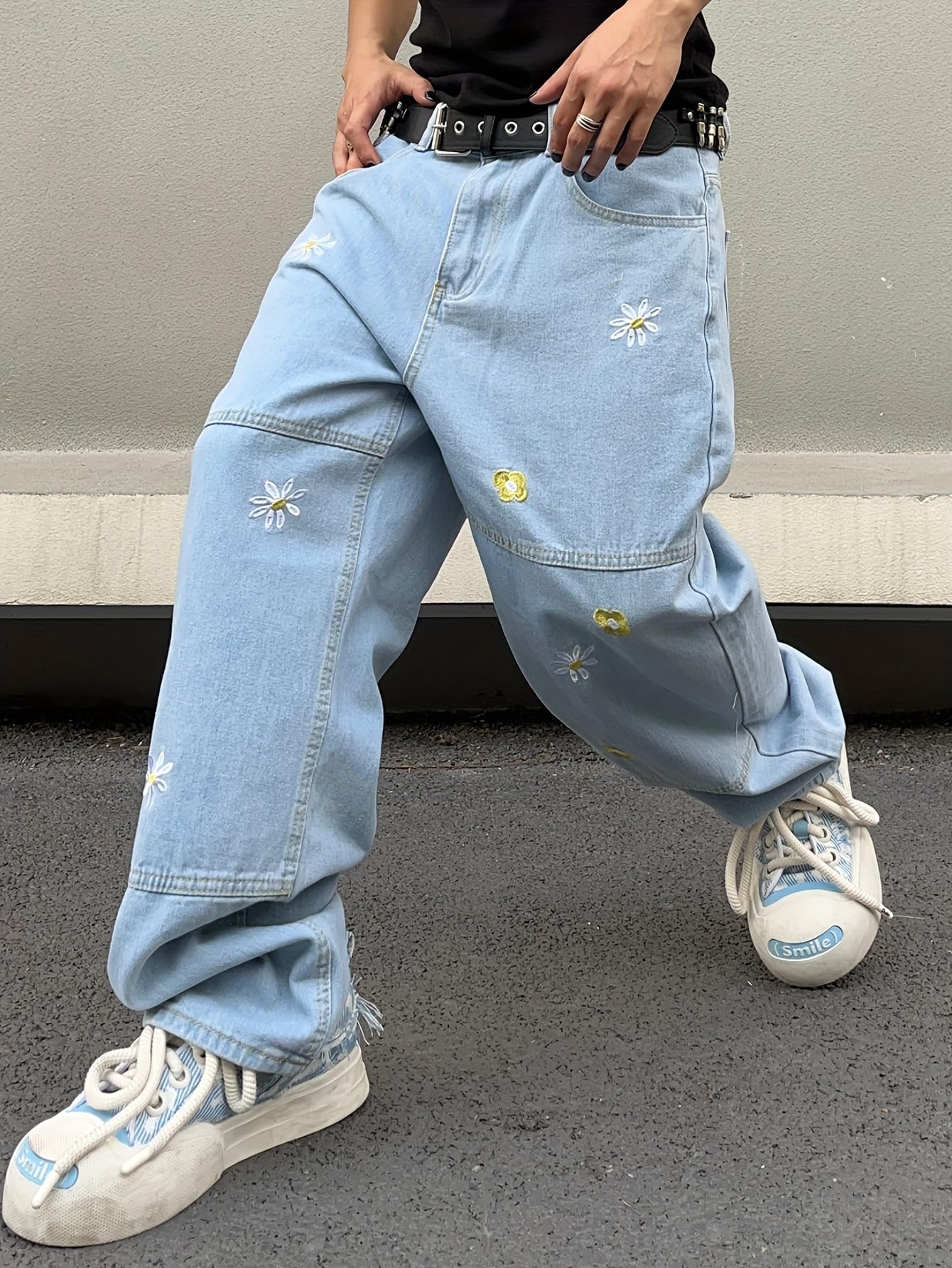 Zewool Men’s Baggy Jeans with Daisy Embroidery