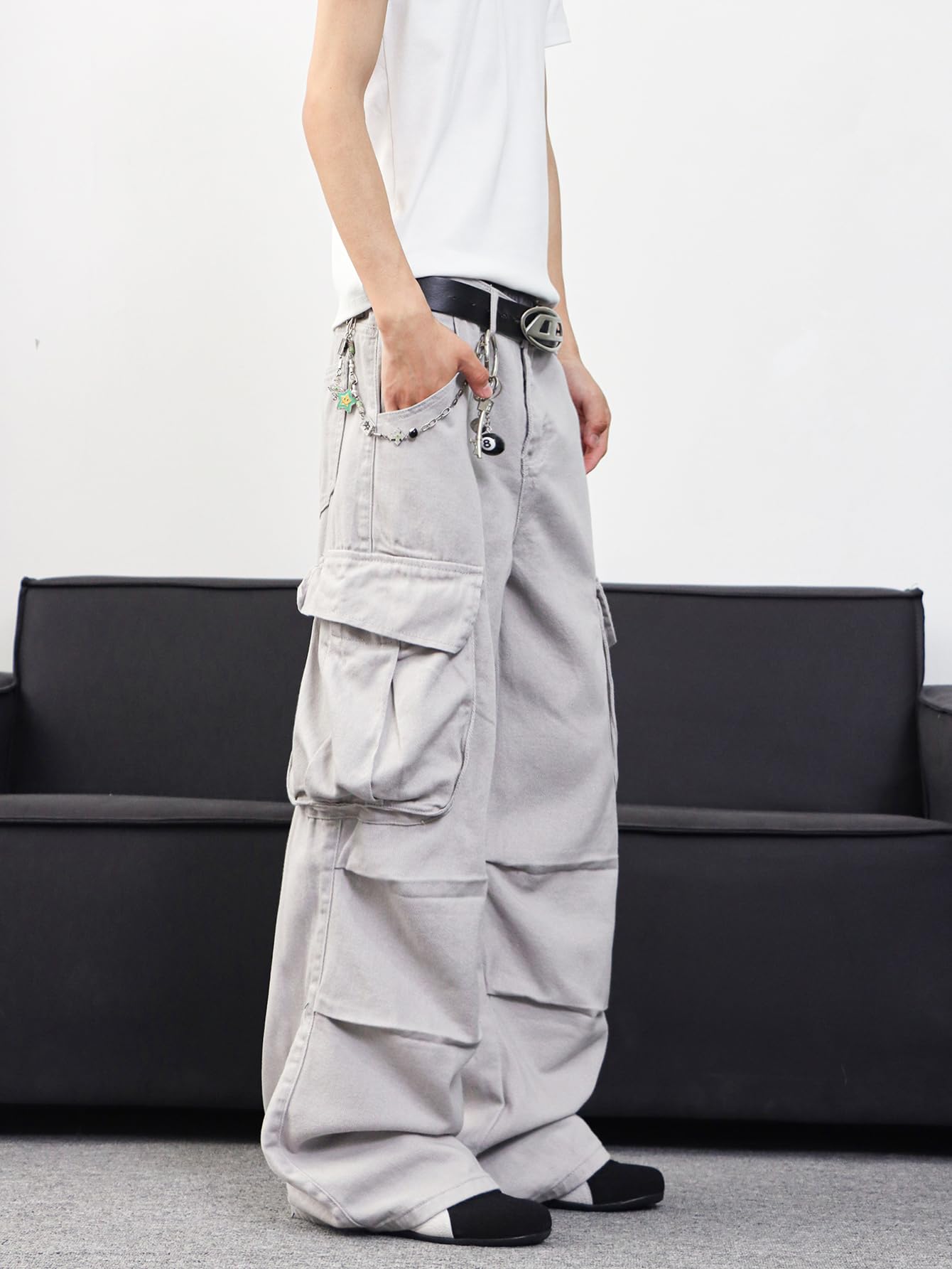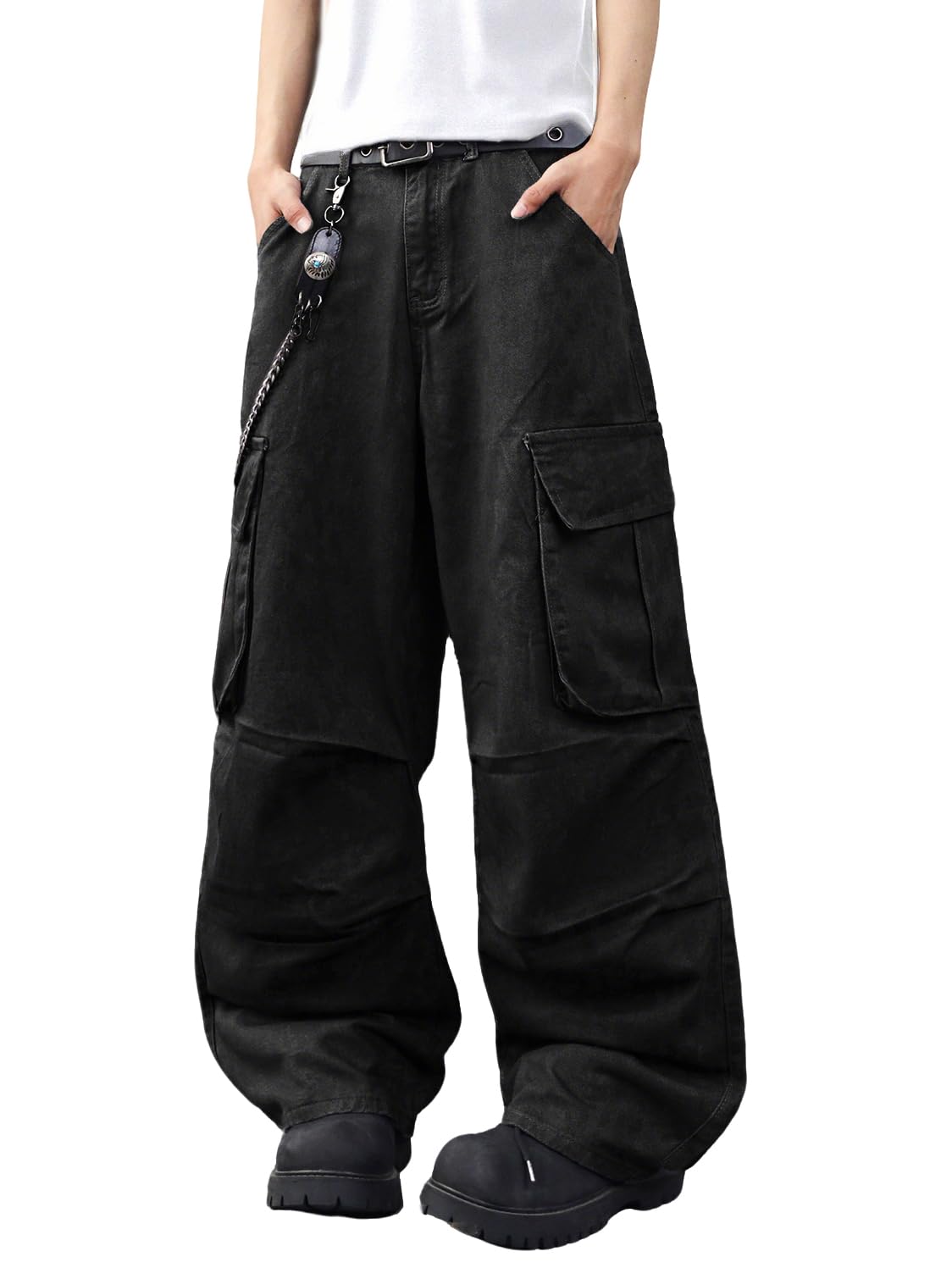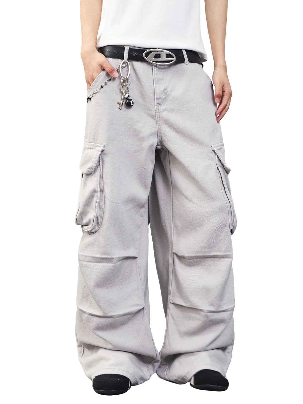 The Zewool Men’s Casual Wide-Leg Denim Cargo Pants combine comfort and practicality with a fashionable Y2K streetwear style. Crafted from 100% cotton, these baggy jeans are perfect for active individuals who need ample storage space. Featuring multiple large pockets, these pants provide plenty of room for essentials while adding a touch of retro charm inspired by the Hip Hop style of the 2000s. With their relaxed fit and durable construction, these jeans are a great choice for skating, outdoor activities, or casual everyday wear.